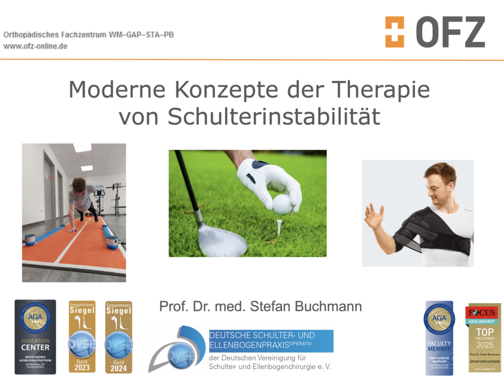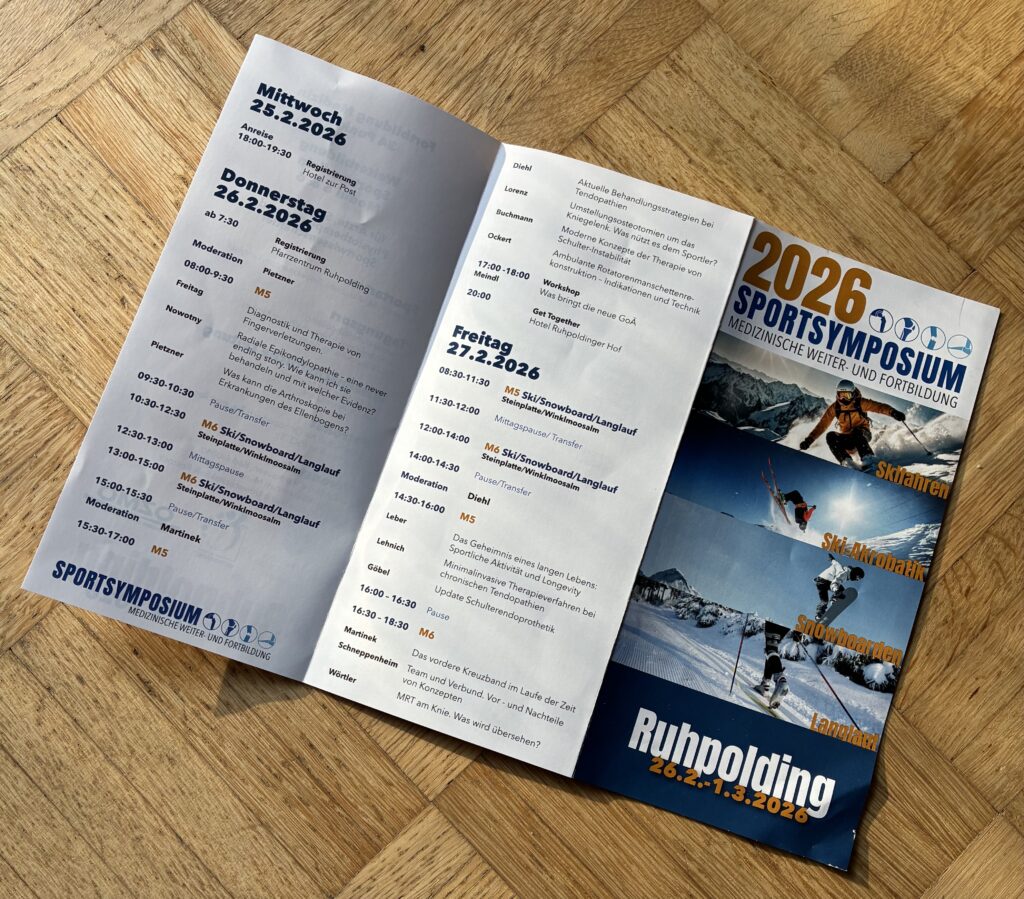 Im Rahmen des alljährlichen Sportsymposiums in Ruhpolding war Prof. Dr. S. Buchmann am 26.02.2026 eingeladener Vortragender. Im Rahmen eines Übersichtsvortrags stellte er „Moderne Konzepte in der Therapie von Schulter-Instabilität“ vor. Hierbei legte er den Schwerpunkt auf moderne minimal-invasive OP-Methoden und die funktionelle Nachbehandlung inklusive der Back-to-Sport Testung. Der Kurs für Ärzte ist Teil des Curriculums zur Erlangung der Zusatzbezeichnung „Sportmedizin“.